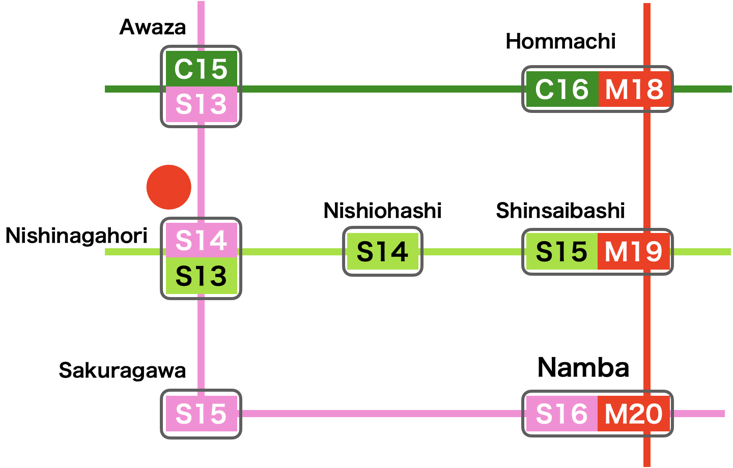 Osaka Metro’’Nishi-Nagahori’’Station on the Nishi-Nagahori Line(Green),