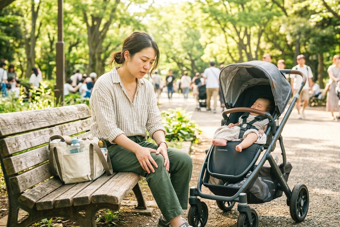赤ちゃんを抱っこした状態での立ち座りは、膝関節に通常の2〜3倍の負荷がかかります。階段の上り下りでは最大6〜7倍になることもあり、これが毎日繰り返されることで炎症が起きやすくなります。