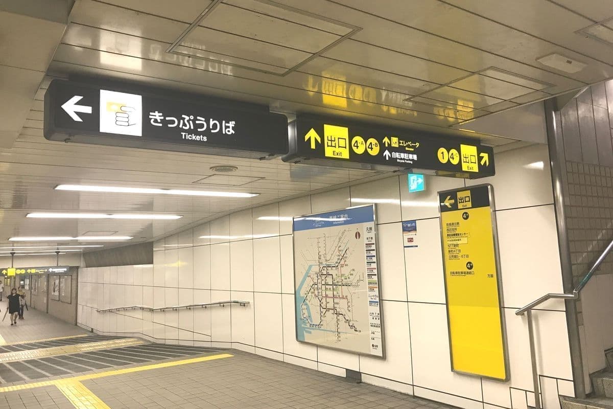 西長堀出口『4A番』から出ます。階段前にはエレベータがあるので