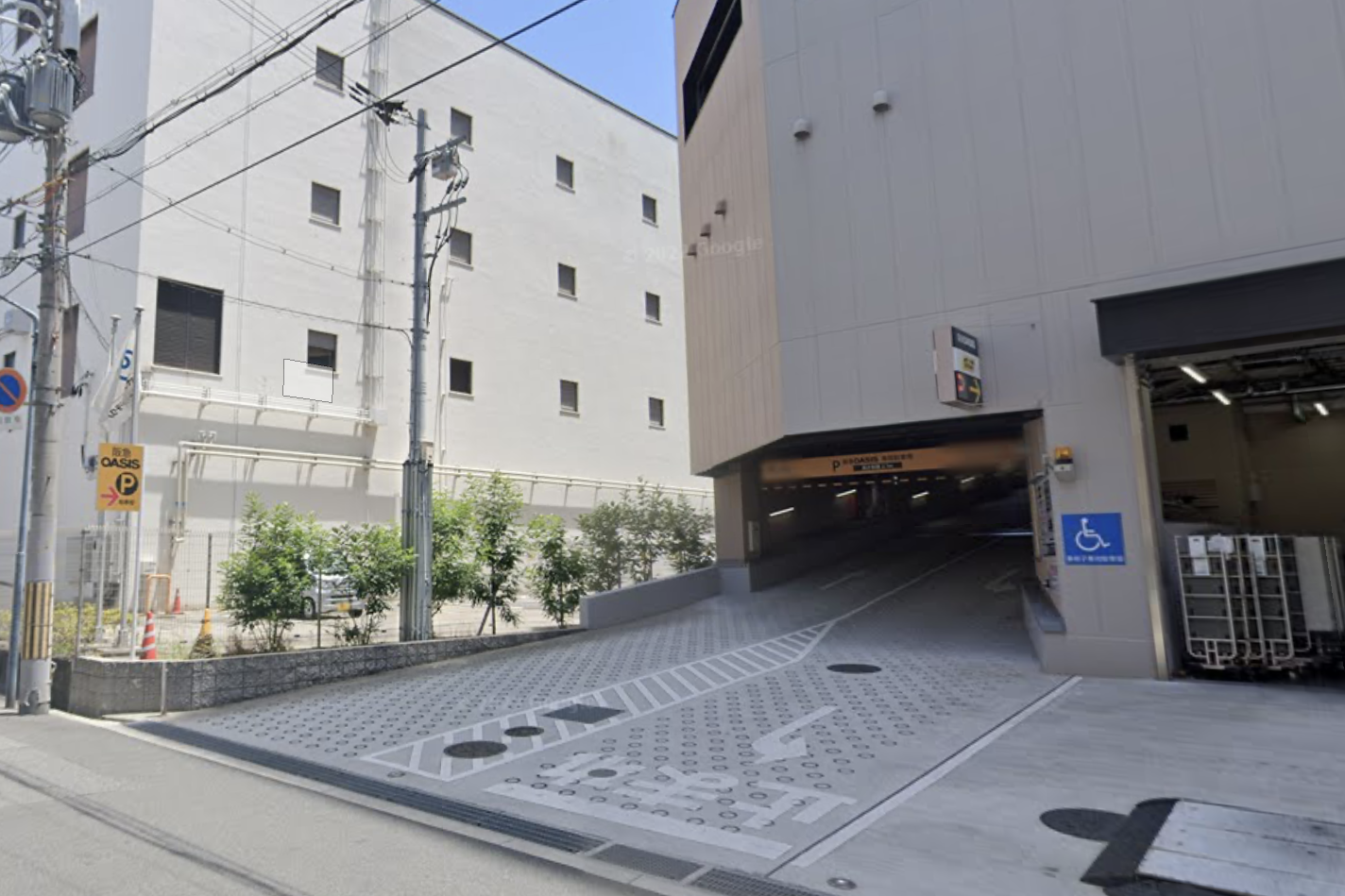 阪急オアシスの北側に駐車場入口があり3F駐車場へ。