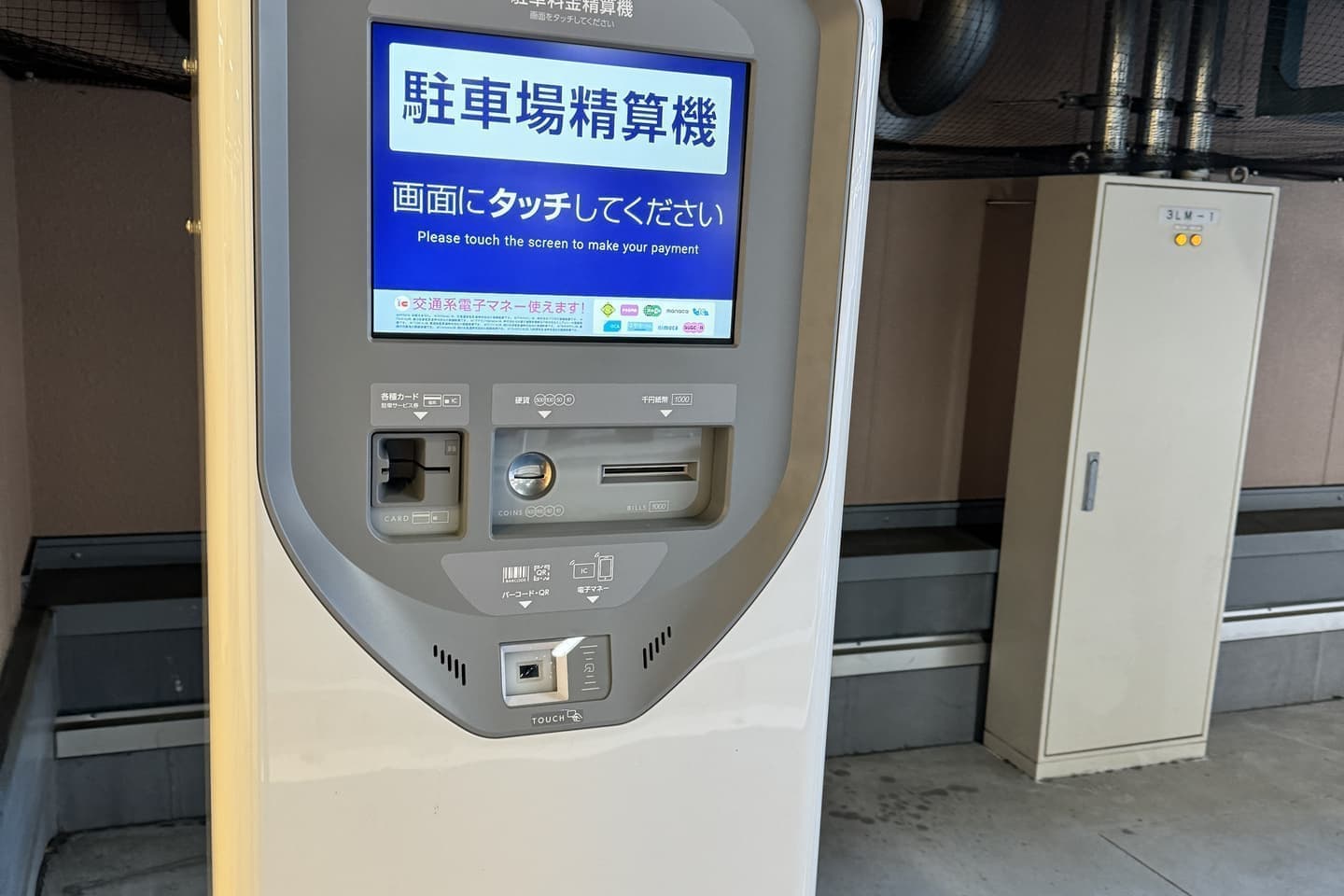ナンバープレート管理の駐車場になります。出庫時にエスカレータ近くの精算機で車の下四桁の番号を入力し精算してください。