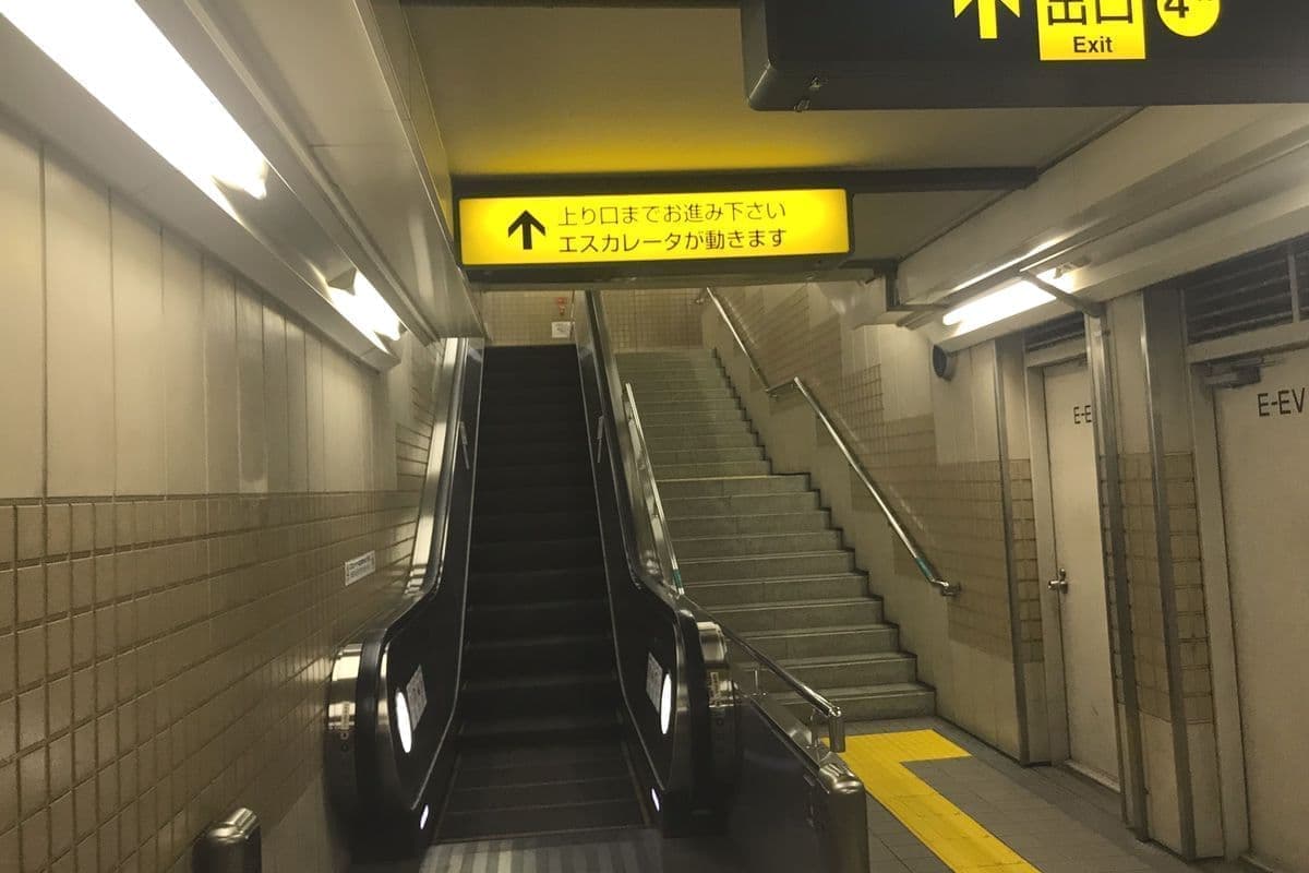 西長堀出口『4A番』から出ます。階段前にはエレベータがあるので